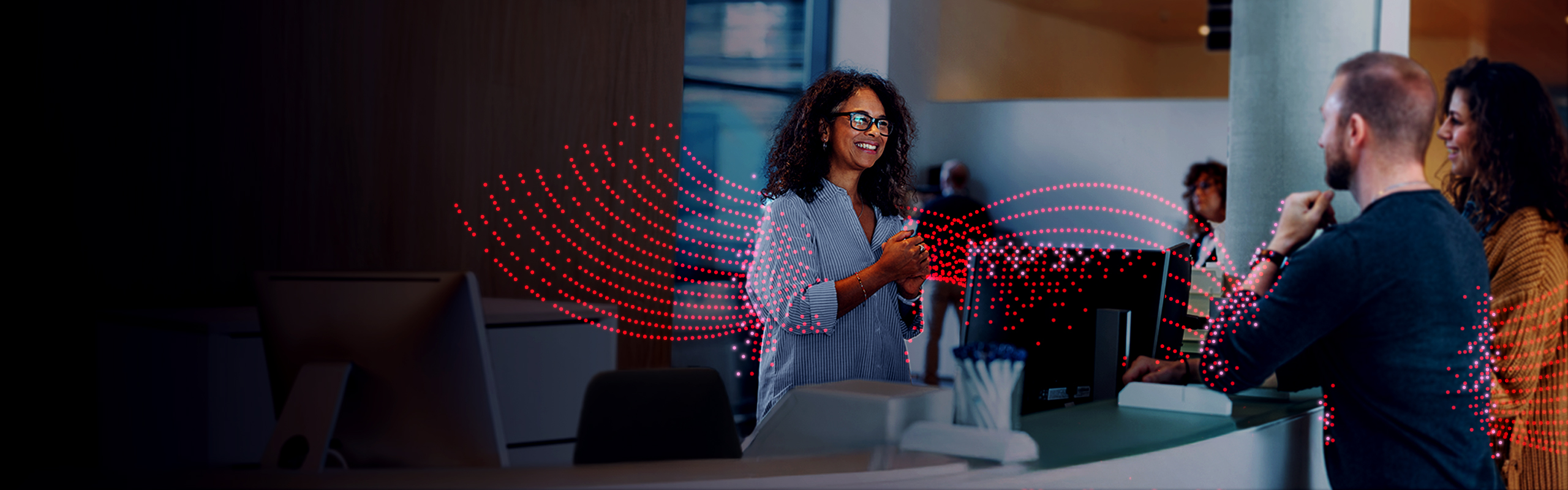 Receptionen och entrén är ansiktet utåt men också ett viktigt informationsnav för såväl besökare som anställda. Vi har ett brett utbud av tekniska lösningar som välkomnar gäster och underlättar kommunikation. Till exempel är storformatsskärmar eller videoväggar idealiska för stora entréer och hotellreceptioner.