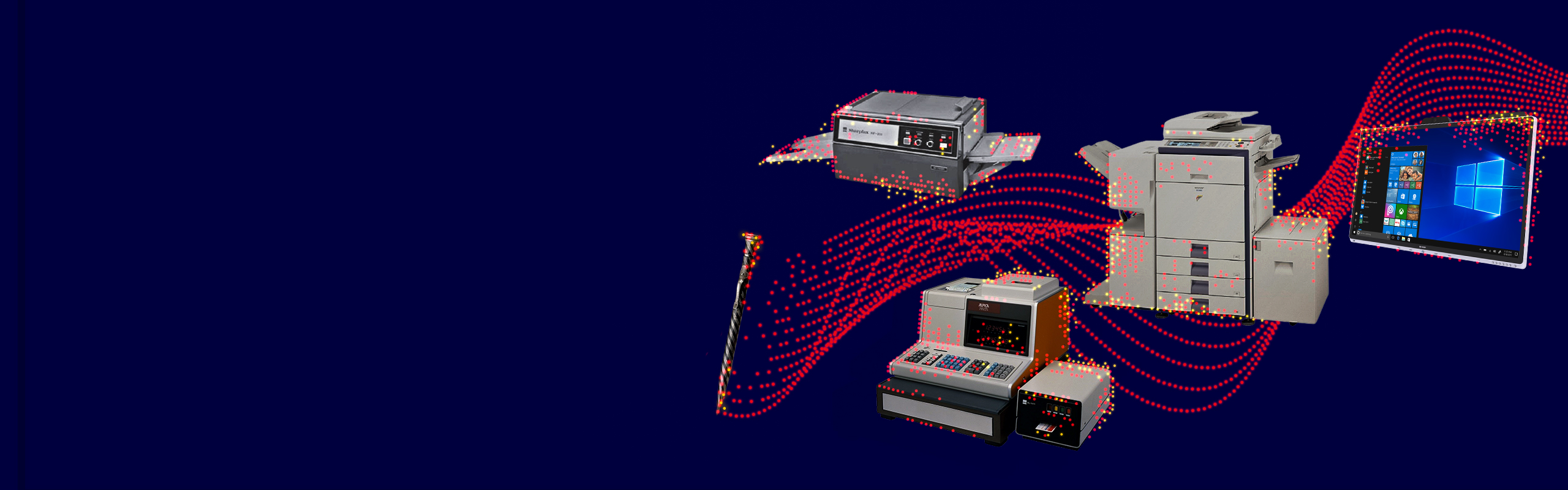 Sharp utvecklar företagsprodukter med hjälp av kunskaper och teknik hämtade från den elektroniska kalkylatorn, och moderniserar butikerna med nya kassasystem och betalningsterminaler. Exempel på dessa är fakturerings- och datainsamlingsfunktioner som används av till exempel Coca-Cola.